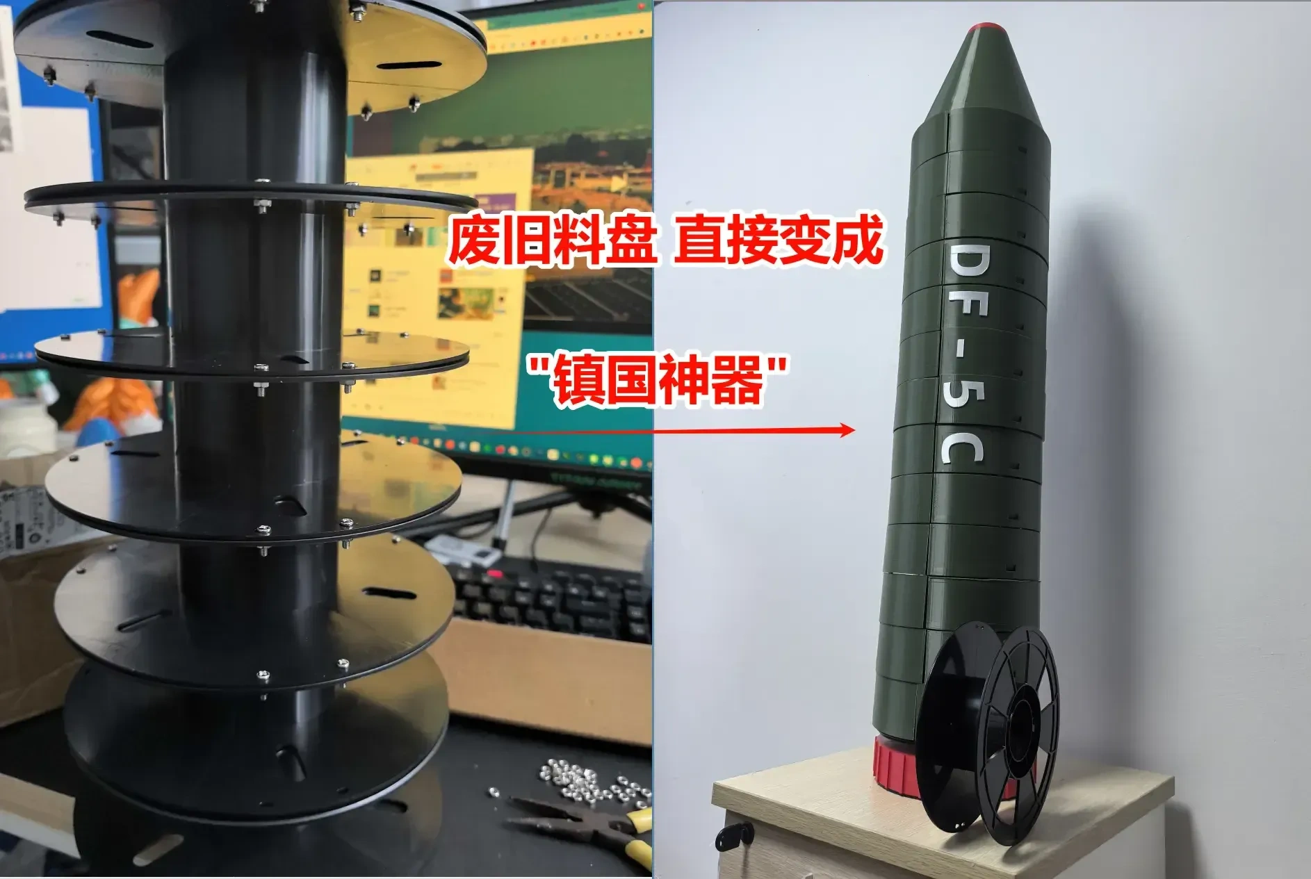 东风-5C废旧料盘终结者 废旧料盘变废为宝料盘收纳盒架客厅房间装饰武器收纳磁吸收纳