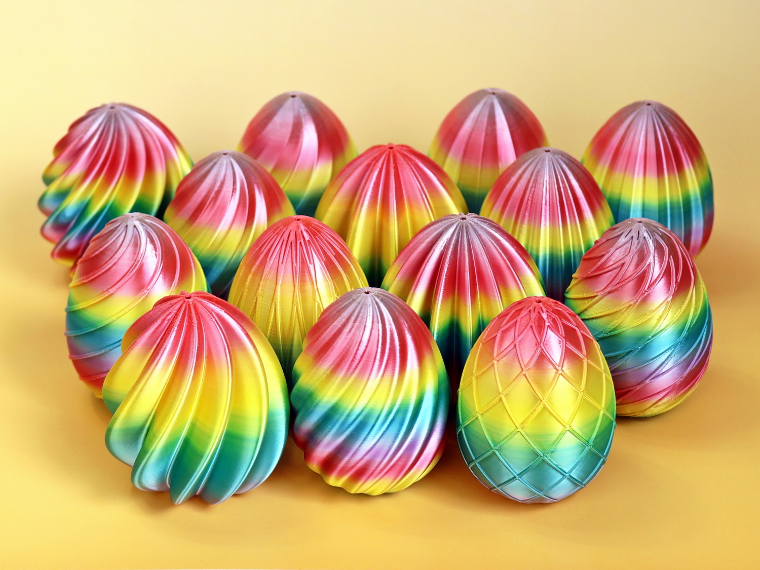 选用中性白、米色或黑色时显得格外优雅;不过既然是复活节,不妨尝试一些色彩鲜艳的耗材,甚至彩虹色的耗材,让它们更具个性。如果您打印了这些彩蛋,请分享一张照片——我总是很乐意欣赏大家的配色创意 :)