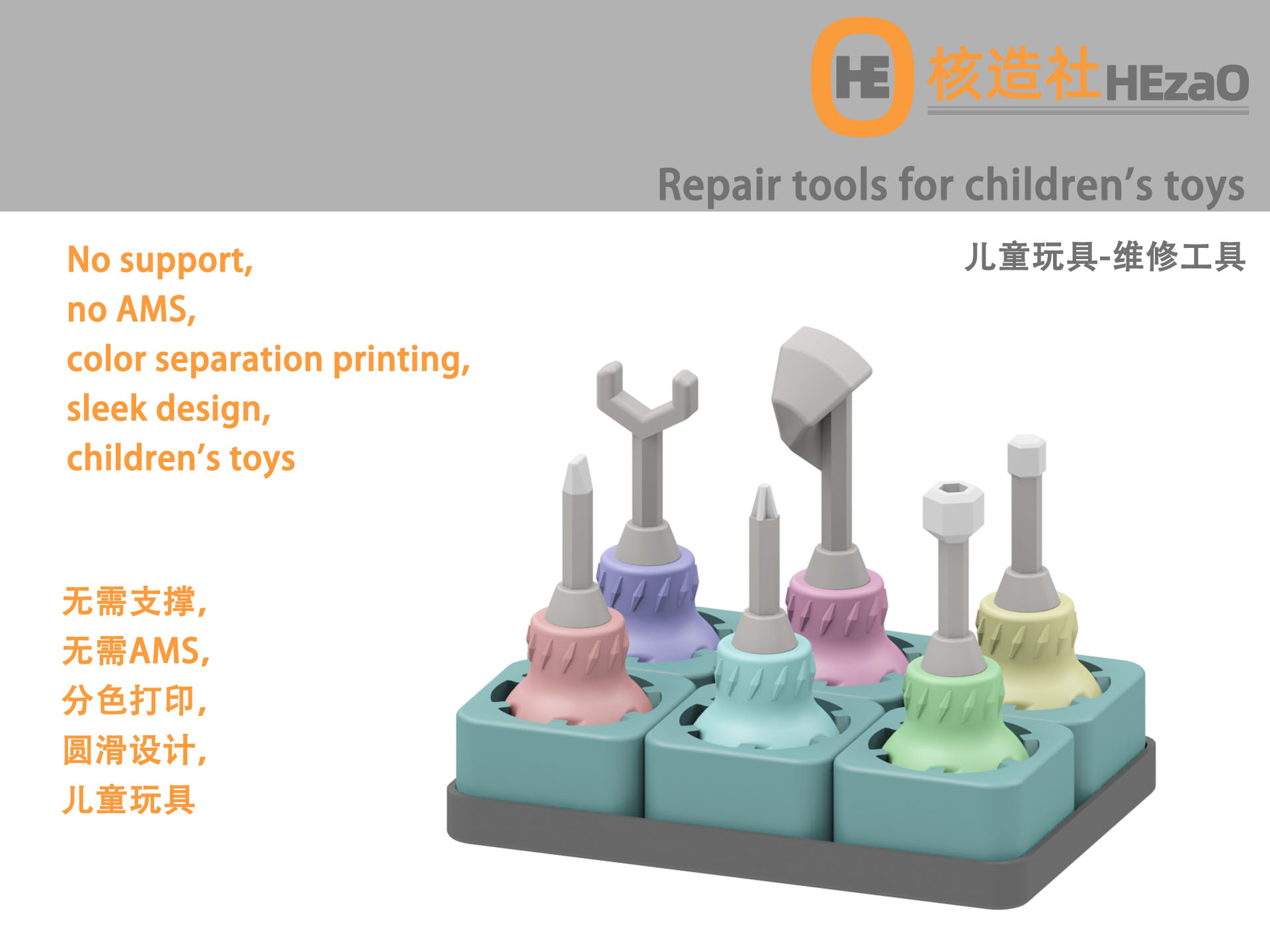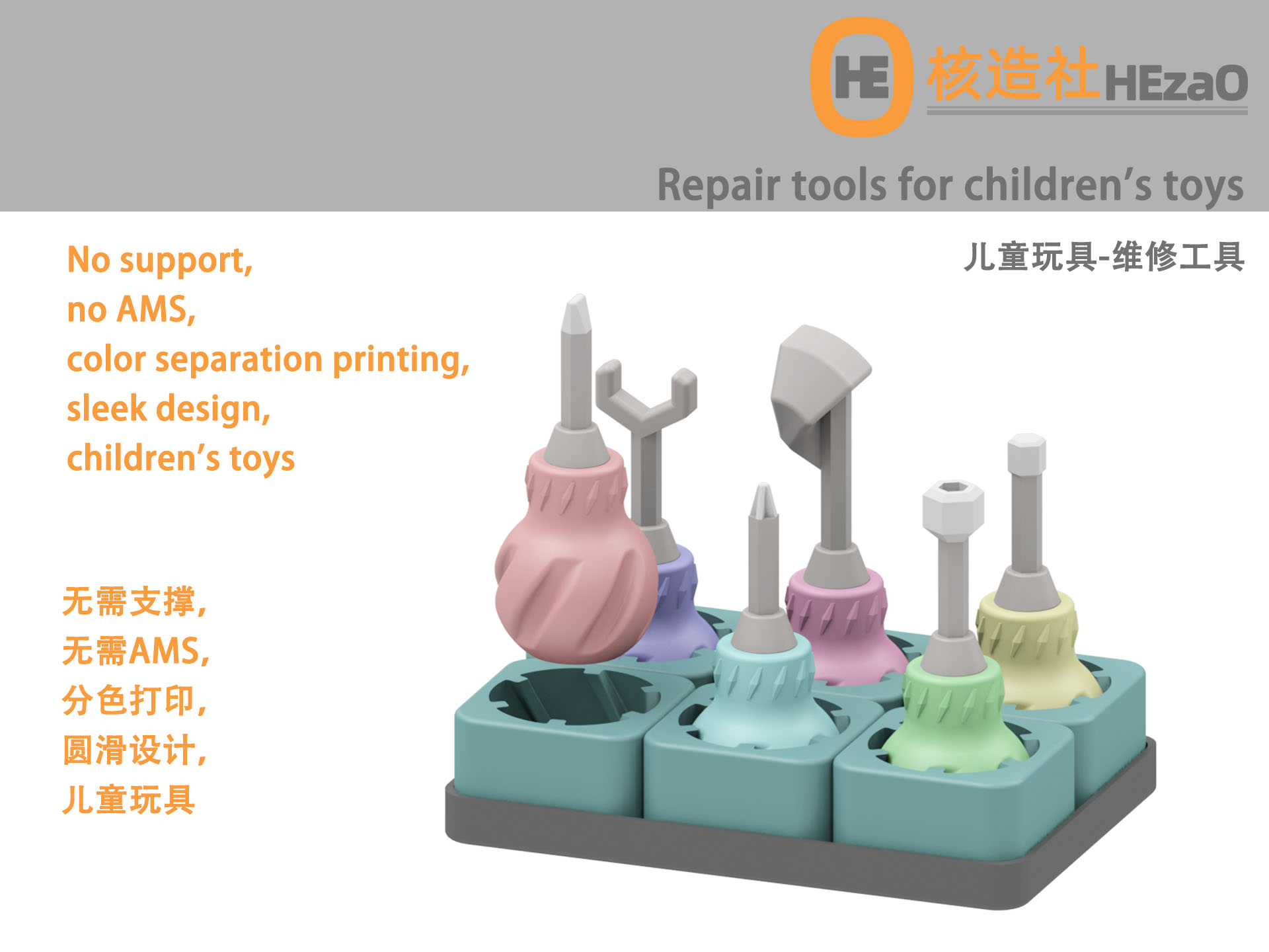 无需支撑,无需AMS,分色打印,圆滑设计,儿童玩具