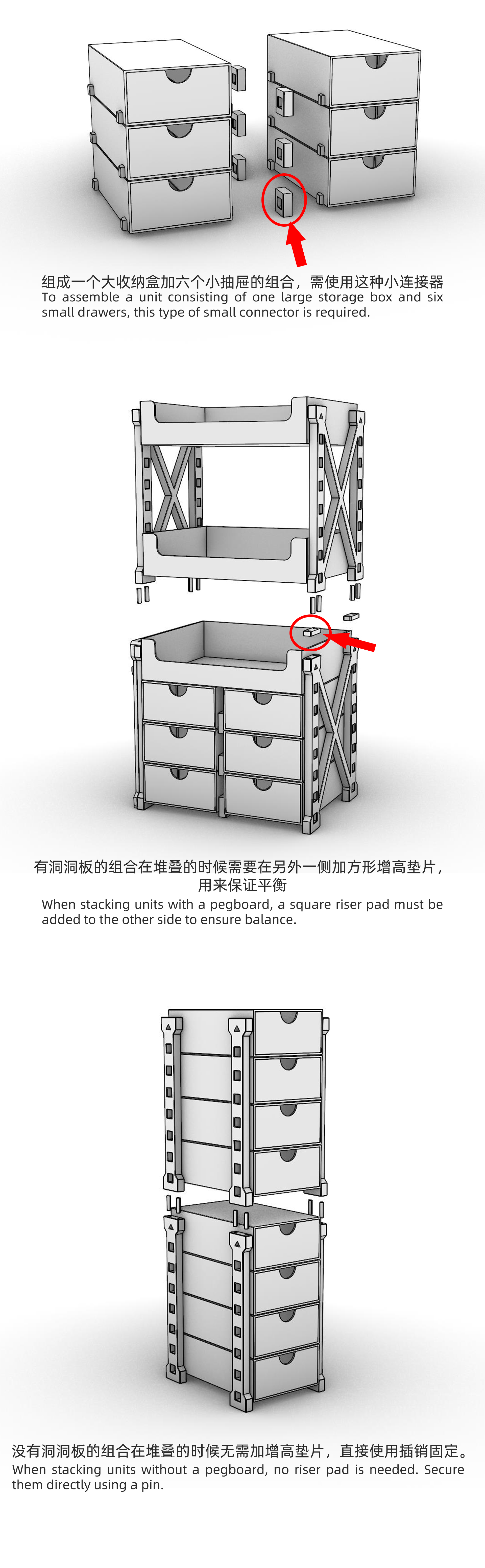 这是我设计的一款桌面整理系统,包含大收纳盒、小收纳盒、抽屉和洞洞板。可根据需求灵活组装,满足对桌面的整理与归纳,合理规划桌面的每一寸面积。其可堆叠设计,可以满足更多收纳 需求,侧边洞洞板设计,能更好利用侧面空闲面积,达到最大化合理利用。