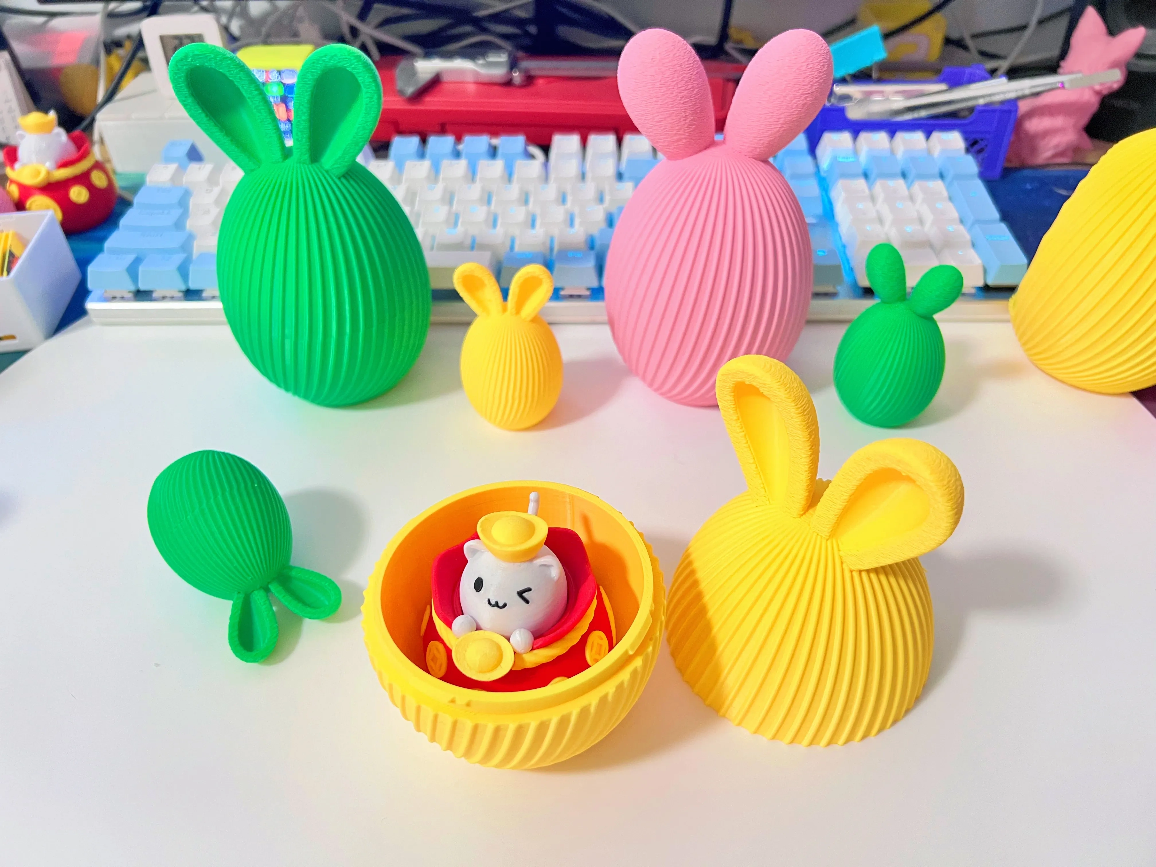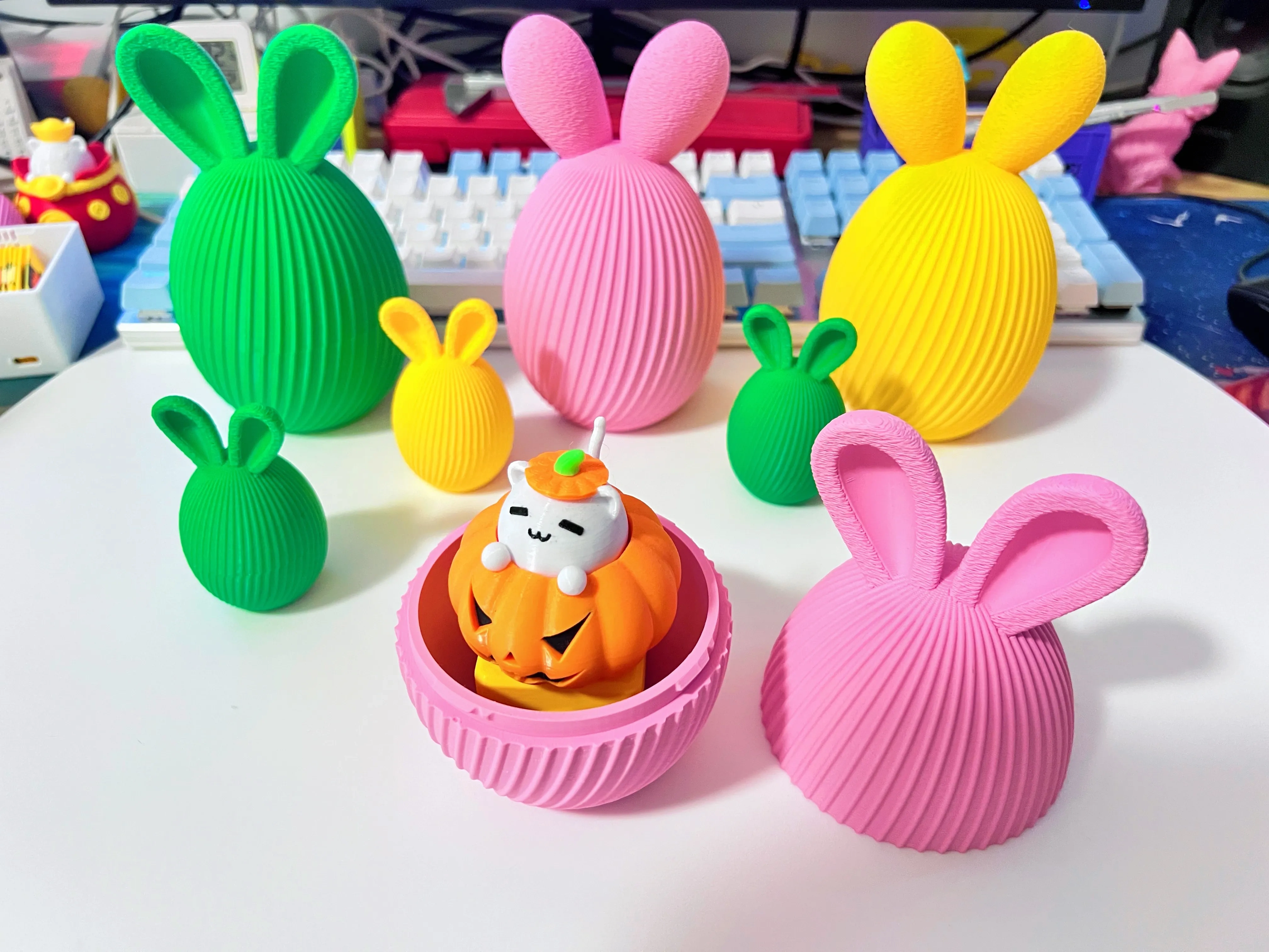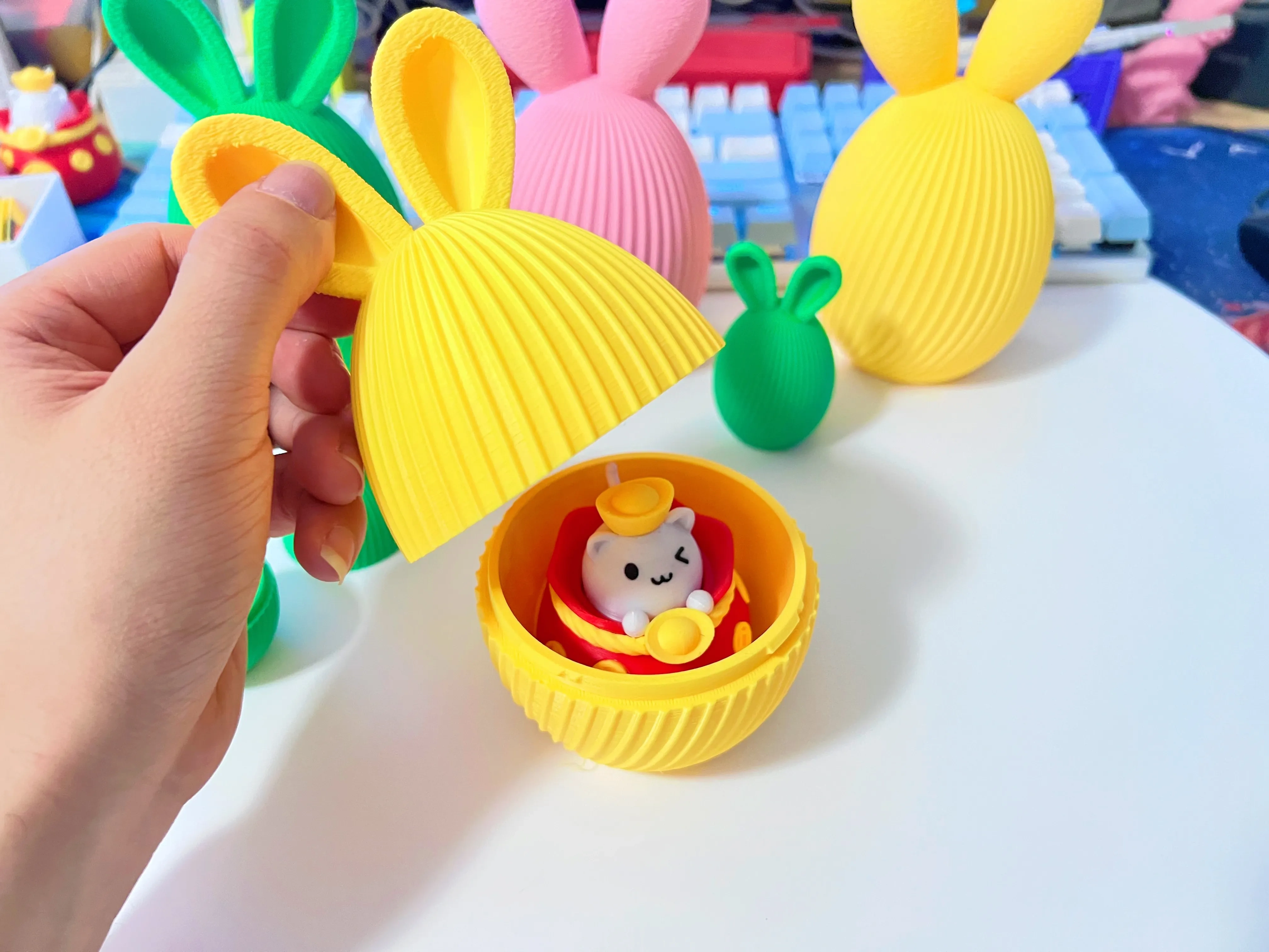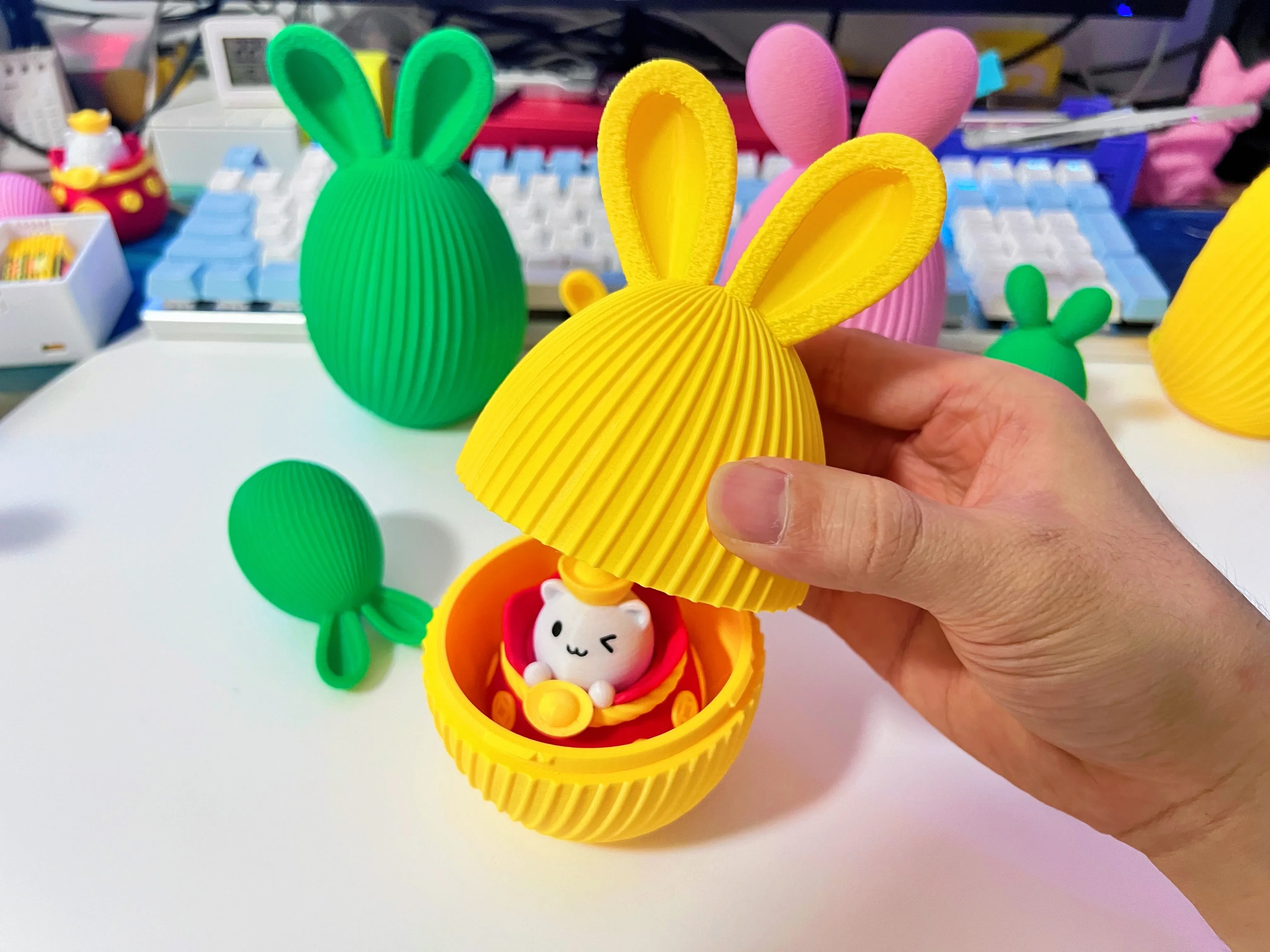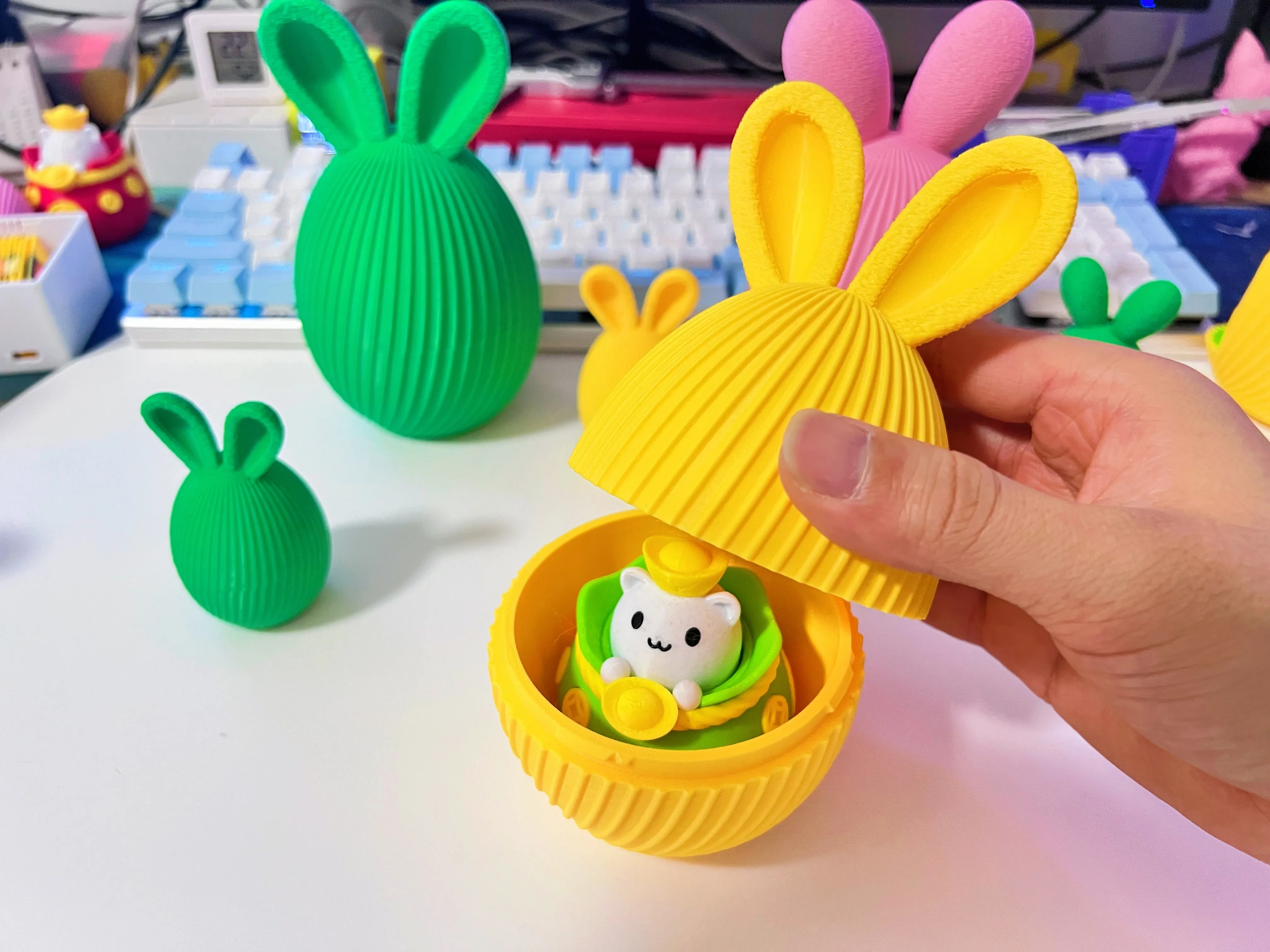 带兔耳朵的复活节彩蛋(隐藏接缝 卡扣式拼装)盲盒容器